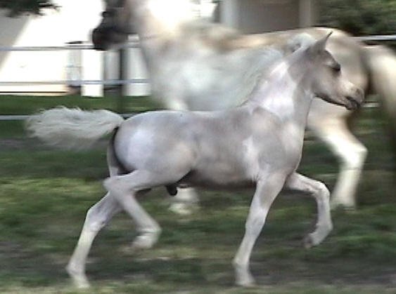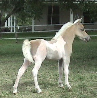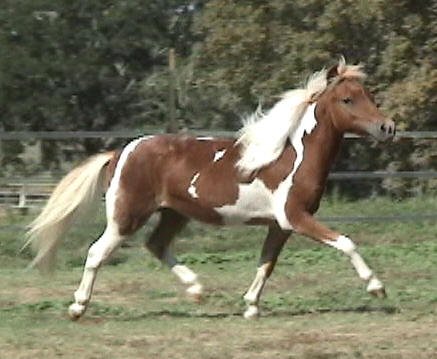 No doubt about it, he is homozygous for the pinto trait; both sire and dam are homozygous for pinto. This is a very flashy colt with super length of neck, smooth body and nice fluid action. (Foaled: 4-6-04) SOLD - Switzerland